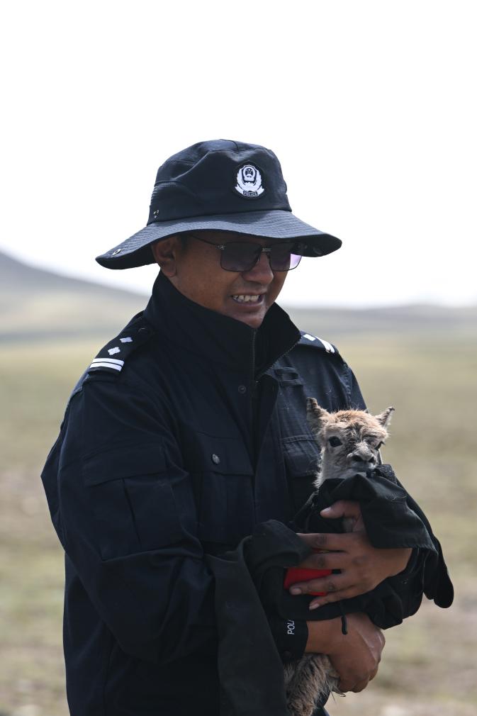 “你在哪里?趕緊把它抱回來,我們?nèi)フ夷??!眳⑴c巡山的青海省公安廳森林警察總隊(duì)曲麻萊森林公安局局長秋松多杰拿起對講機(jī),一邊喊一邊朝多結(jié)仁欠的方向跑去。