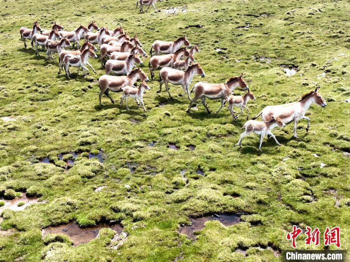 圖為藏野驢在草原濕地“遛娃”。才新木加 攝