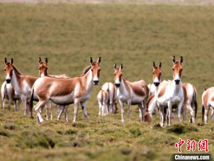 圖為成群藏野驢在草原上駐足。才新木加 攝