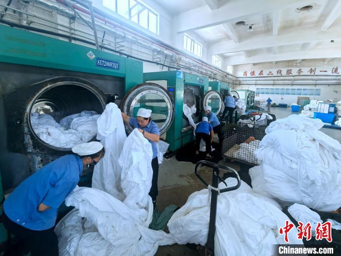 在每日不間斷的迎來送往中,中國鐵路青藏集團有限公司的洗滌廠也異常繁忙。