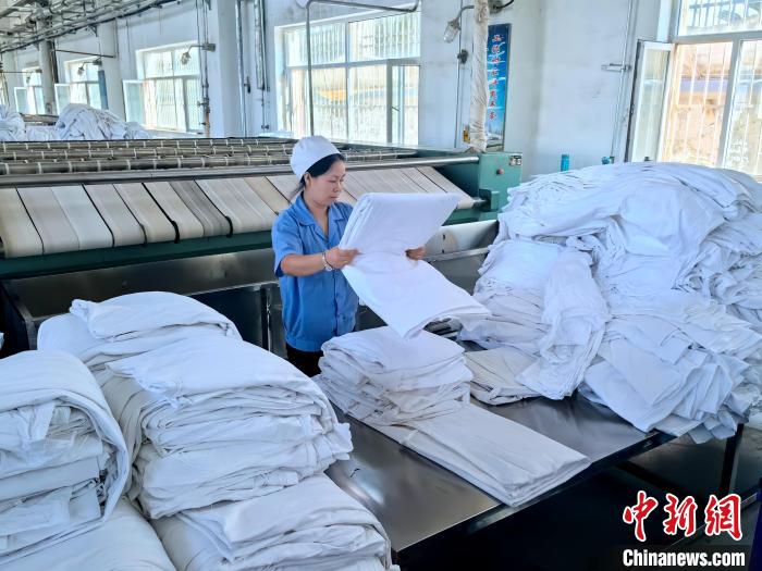 “漂洗完的床單被套在進行了12分鐘的高速脫水后,就到了熨燙烘干環(huán)節(jié),燙平機會把漂洗完的床單熨燙平整。不過,在此之前,洗滌工要對洗滌質(zhì)量進行檢查,只有達標的物件才能送進熨燙機。別看好多工作都是由機器來完成,一個班下來,光折疊、打包這一項工作,都讓人累得抬不起胳膊?!蔽挠⒄f。