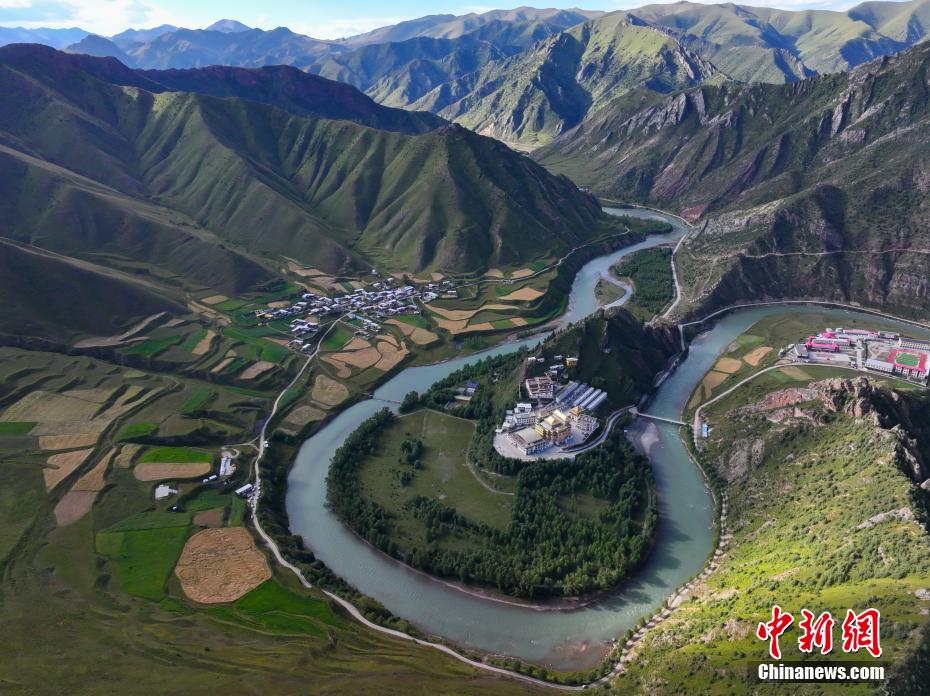 青海省玉樹藏族自治州囊謙縣地處青海省最南端、三江源腹地,瀾滄江上游五條支流貫穿全境,在該縣毛莊鄉(xiāng),瀾滄江東源孜曲蜿蜒而下,古老的尕丁寺被孜曲包圍,成為當(dāng)?shù)鬲?dú)特風(fēng)景。