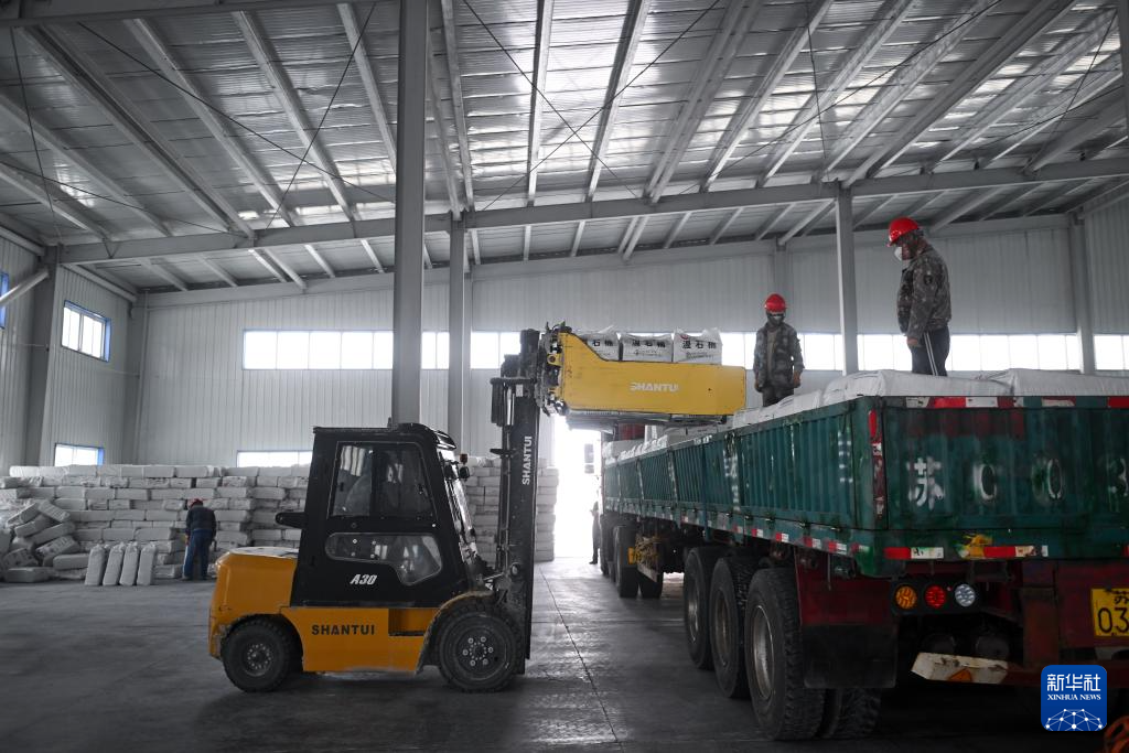 8月22日,在青海省海西蒙古族藏族自治州茫崖鎮(zhèn),青海創(chuàng)安公司工人在搬運石棉產(chǎn)品。新華社記者 張龍 攝