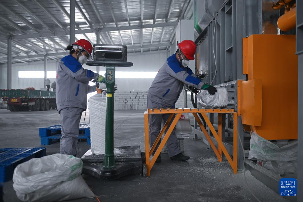 8月22日,在青海省海西蒙古族藏族自治州茫崖鎮(zhèn),青海創(chuàng)安公司工人將壓縮石棉產(chǎn)品裝袋。新華社記者 張龍 攝
