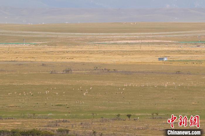 9月26日,在青海湖北岸的青海省海北藏族自治州剛察縣哈爾蓋普氏原羚科普研學(xué)教育基地內(nèi),拍攝到的野生普氏原羚群。目前,中國國家一級重點保護野生動物普氏原羚野外種群數(shù)量從監(jiān)測之初不足300只恢復(fù)至3000余只。普氏原羚現(xiàn)僅分布于青海湖環(huán)湖區(qū)域,其中,以剛察縣哈爾蓋河流域最為集中。中新社記者 薛蒂 攝