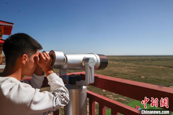 9月26日,在青海湖北岸的青海省海北藏族自治州剛察縣哈爾蓋普氏原羚科普研學(xué)教育基地內(nèi),參觀人員在觀測臺上通過望遠鏡觀察野生普氏原羚。目前,中國國家一級重點保護野生動物普氏原羚野外種群數(shù)量從監(jiān)測之初不足300只恢復(fù)至3000余只。普氏原羚現(xiàn)僅分布于青海湖環(huán)湖區(qū)域,其中,以剛察縣哈爾蓋河流域最為集中。中新社記者 薛蒂 攝