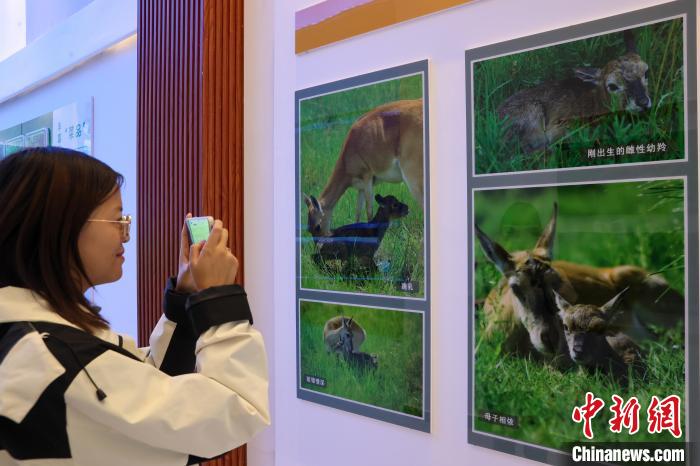 9月26日,在青海湖北岸的青海省海北藏族自治州剛察縣哈爾蓋普氏原羚科普研學(xué)教育基地內(nèi),參觀人員拍攝記錄普氏原羚相關(guān)知識。目前,中國國家一級重點保護野生動物普氏原羚野外種群數(shù)量從監(jiān)測之初不足300只恢復(fù)至3000余只。普氏原羚現(xiàn)僅分布于青海湖環(huán)湖區(qū)域,其中,以剛察縣哈爾蓋河流域最為集中。中新社記者 薛蒂 攝