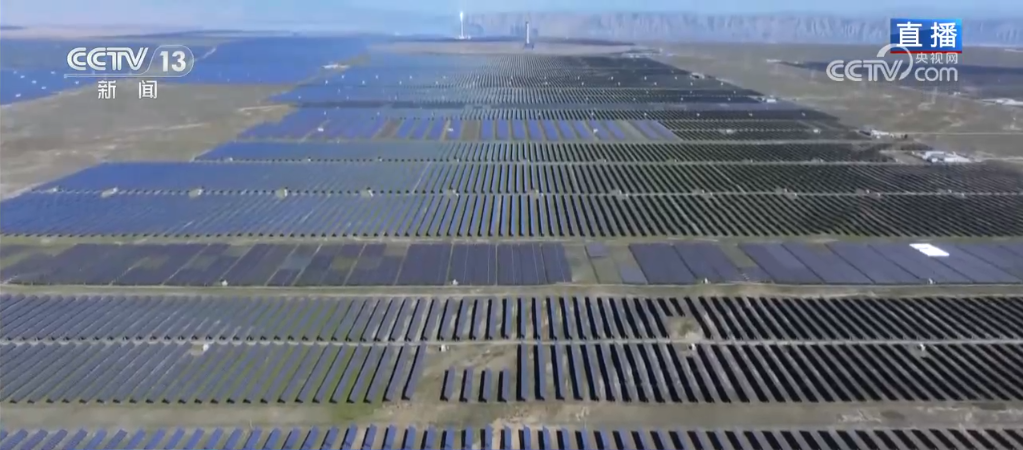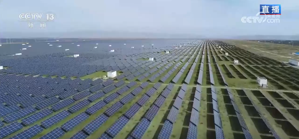 這些光伏組件從廠房里生產(chǎn)出來,去到了哪里來實現(xiàn)它們的綠色能源使命呢?答案就在記者的身后,青海省海南州塔拉灘——全球裝機容量最大的光伏發(fā)電園區(qū)。這里光照資源豐富,在600多平方公里的土地上,光伏發(fā)電面板如同深藍色的海洋一樣鋪滿了大地,在這里吸收的太陽的能量,把陽光轉(zhuǎn)化為電能。