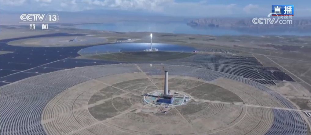 明年,這座年發(fā)電量達2.3億度的光熱電站也將投入使用,2萬多臺定日鏡反射70萬平米的陽光,形成560多度的高溫,將特殊的熱融鹽融化,再輸送到地面上的發(fā)電廠房里,慢慢地釋放太陽的能量,發(fā)出綠色的電力。