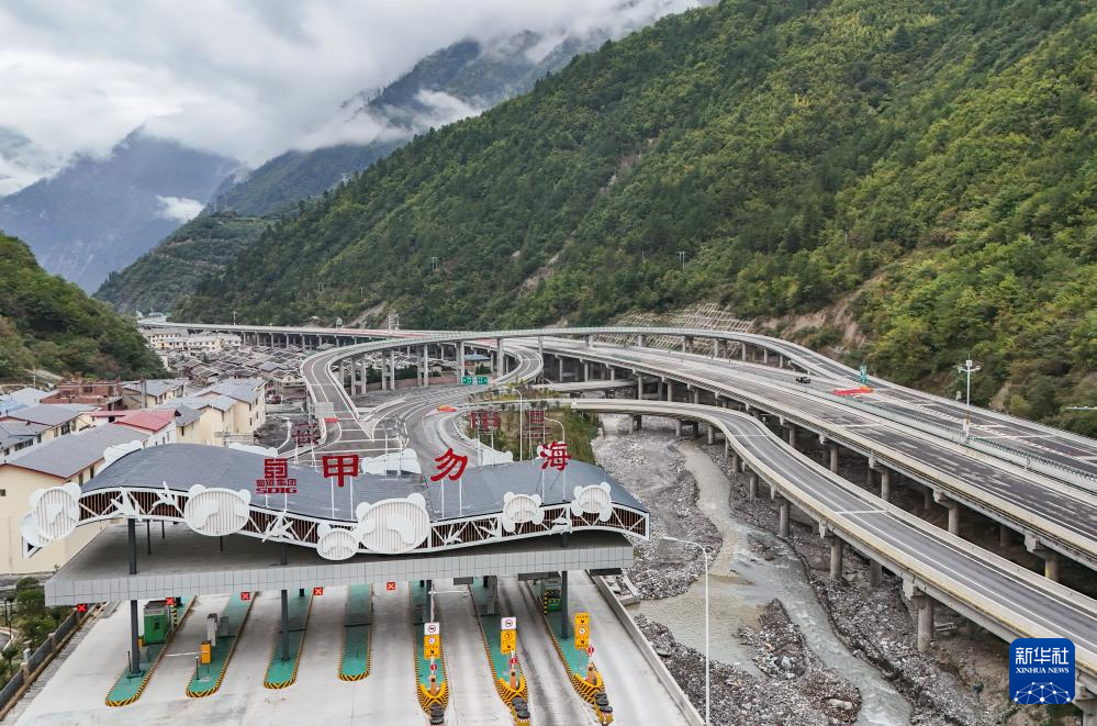 這是10月11日拍攝的正在建設(shè)中的九寨溝—綿陽(yáng)高速公路甲勿海收費(fèi)站(無(wú)人機(jī)照片)。九綿高速開通后,從成都至九寨溝縣的時(shí)間將從原來(lái)的8小時(shí)縮短至4小時(shí)。新華社記者 王曦 攝