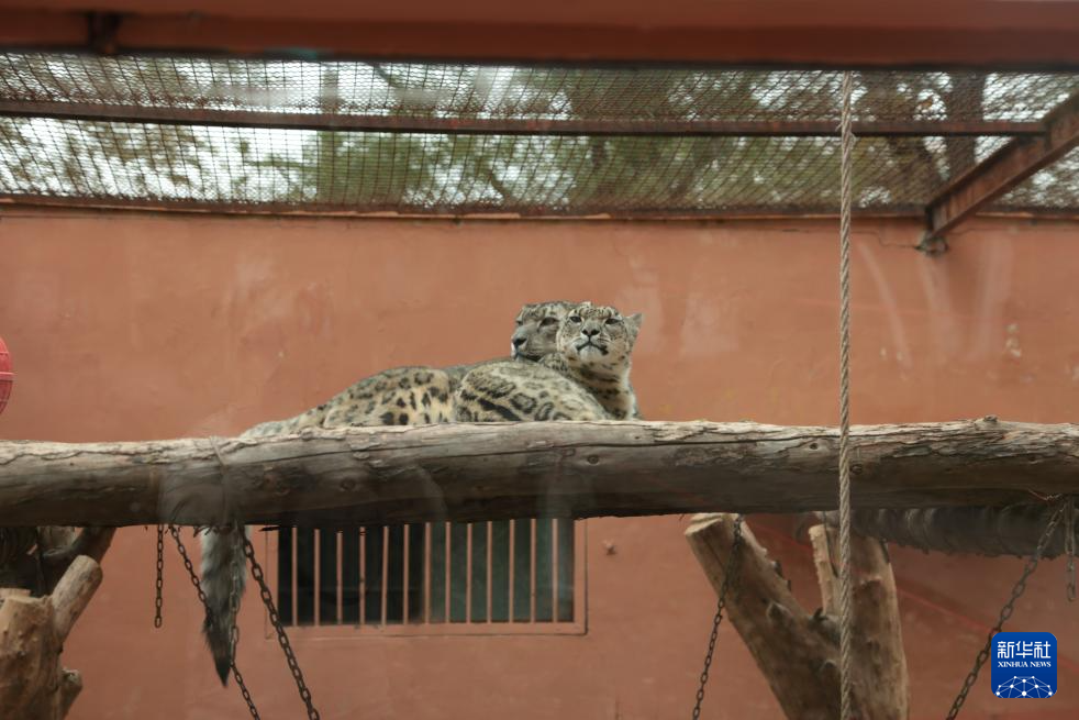 西寧野生動物園副園長何順福介紹,“大虎”今年18歲,是2006年從青海省海西蒙古族藏族自治州救護(hù)的一只雄性雪豹,“凌霜”是2017年從青海省玉樹藏族自治州救護(hù)的,因被救助時(shí)靠近二十四節(jié)氣“霜降”,便取名“凌霜”。今年是它們合籠飼養(yǎng)的第四年。