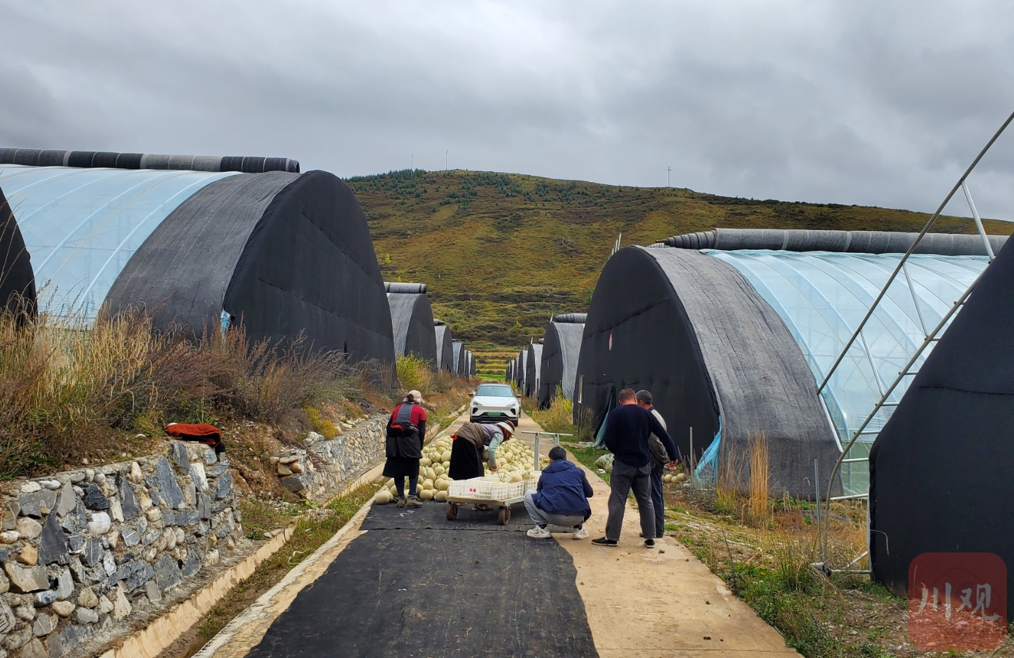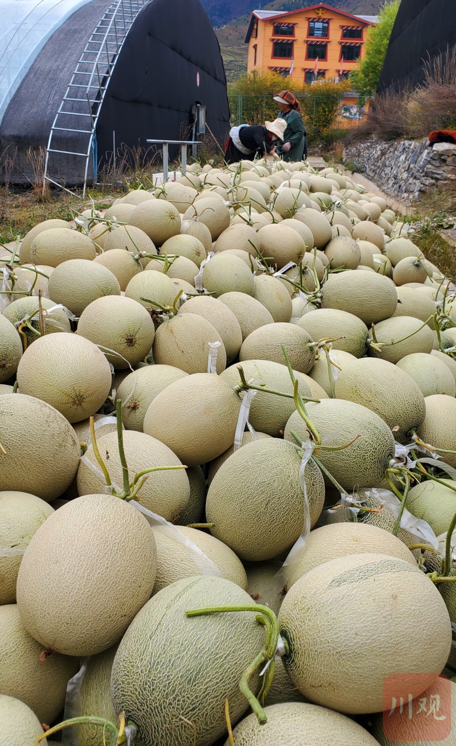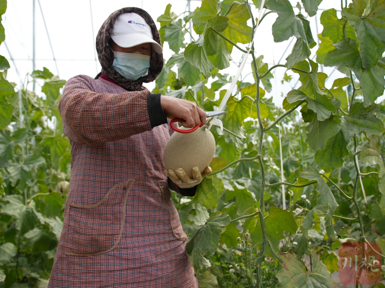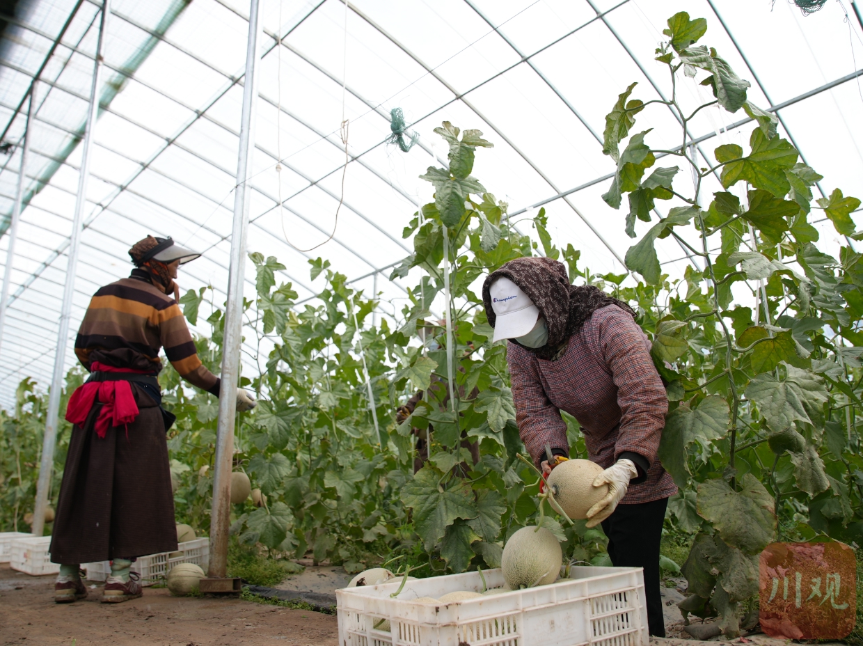 10月24日,位于阿壩州松潘縣川主寺鎮(zhèn)的松潘高原現(xiàn)代農業(yè)產業(yè)園區(qū)內,豐收的高原網紋瓜進入采摘期。