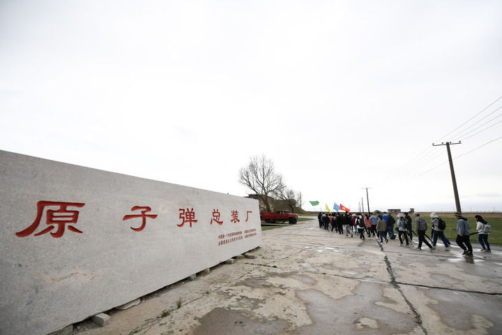 2021年5月31日,青海大學(xué)“三江源生態(tài)”一流學(xué)科博士團(tuán)成員在二二一廠舊址參觀。新華社記者 張龍 攝