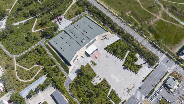 這是2024年8月29日拍攝的青海原子城紀(jì)念館(無(wú)人機(jī)照片)。新華社記者 李占軼 攝