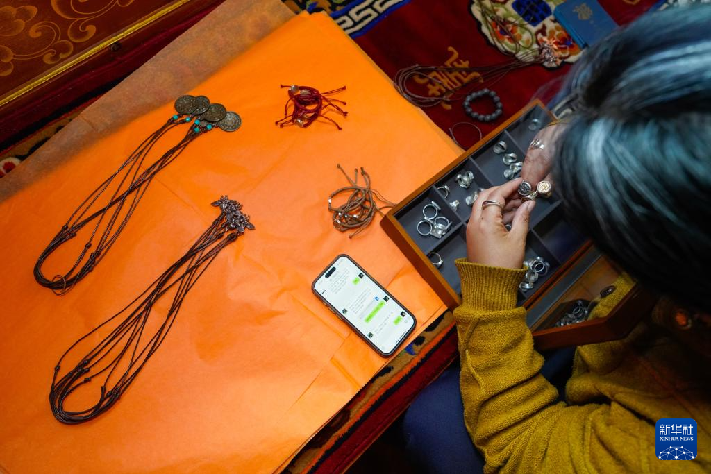 達(dá)瓦卓瑪在整理準(zhǔn)備要寄出的訂單貨品(11月3日攝)。新華社記者 沈伯韓 攝