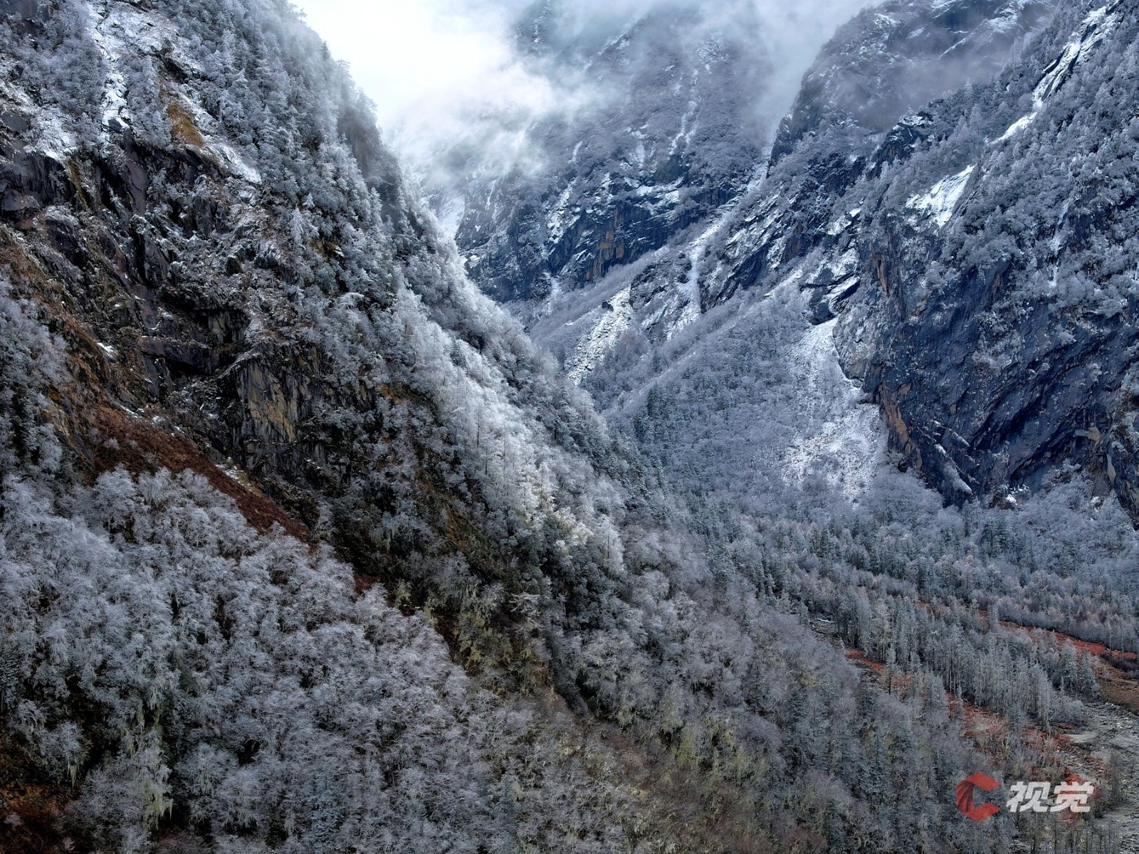 11月17日,俯瞰初冬時(shí)節(jié)的理小路,宛如一個(gè)童話世界。