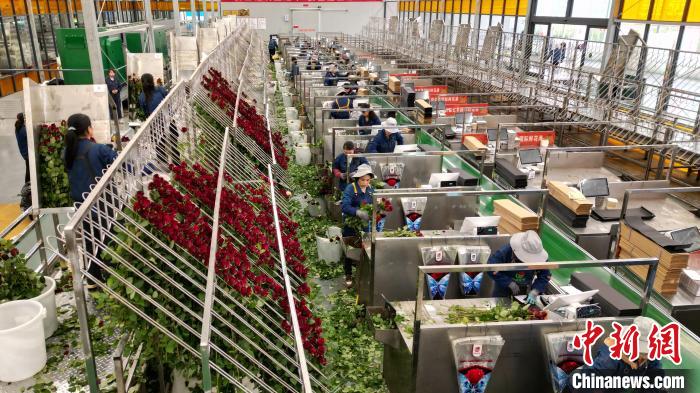 目前,當地建成面積20萬平方米高新智能化溫室,鮮花四季盛開。記者看到,棚頂紅色的全自動補光燈正在為玫瑰“延長光照時長”。精準控制營養(yǎng)液成分和濃度的智能化水肥一體化系統(tǒng)、自動化分選等高新設備投入,科技種植和品質上升,讓臨夏成為中國重要的優(yōu)質鮮切花生產基地,日產20萬枝鮮切花,海內外訂單不斷。