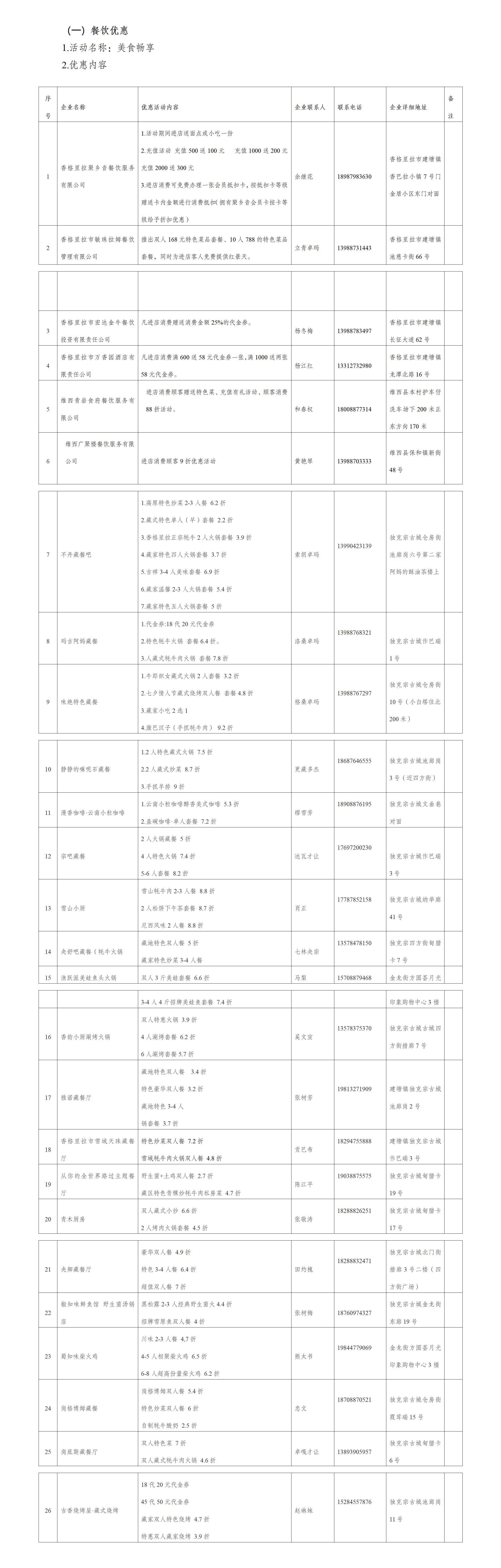 為熱烈迎接香格里拉的冬季旅游市場(chǎng)消費(fèi)客群,迪慶商務(wù)部門在動(dòng)車開(kāi)通一周年之際特別推出一系列“吃、住、購(gòu)”的優(yōu)惠政策。6家線上特色餐飲企業(yè)及20家古城精選餐飲業(yè)將提供2.2折至9.2折的超值優(yōu)惠,同時(shí)發(fā)放各類優(yōu)惠券;19家優(yōu)質(zhì)線上住宿企業(yè)及州內(nèi)百余家民宿將提供8折至8.5折的住宿優(yōu)惠;10余家迪慶特色產(chǎn)品的生產(chǎn)銷售企業(yè)推出滿減折扣優(yōu)惠、享受贈(zèng)品的優(yōu)惠福利,讓廣大游客樂(lè)游香格里拉提升旅游體驗(yàn)。