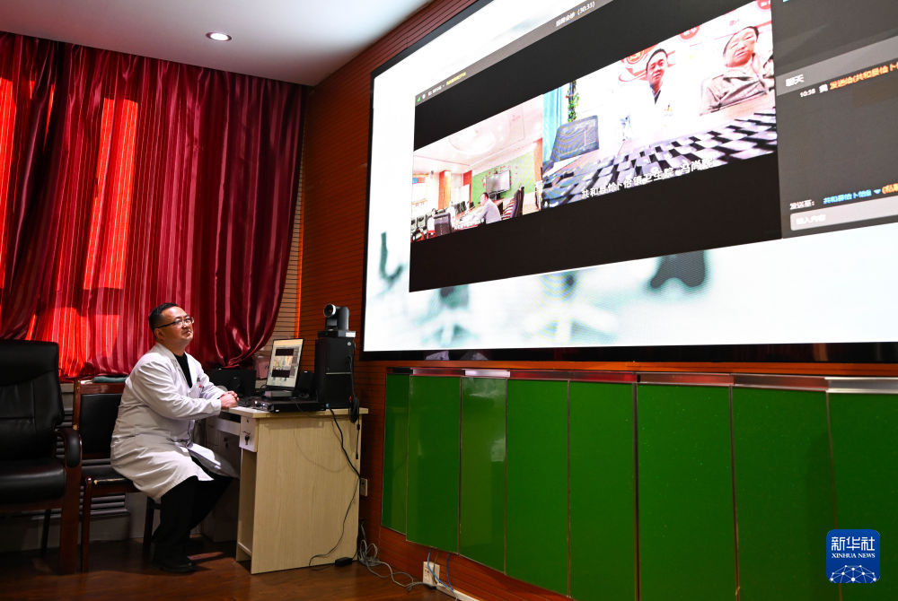 12月17日,在青海省海南藏族自治州共和縣中醫(yī)院,醫(yī)生穆連財(cái)在與鄉(xiāng)鎮(zhèn)衛(wèi)生院連線進(jìn)行遠(yuǎn)程會(huì)診。新華社記者 張龍 攝