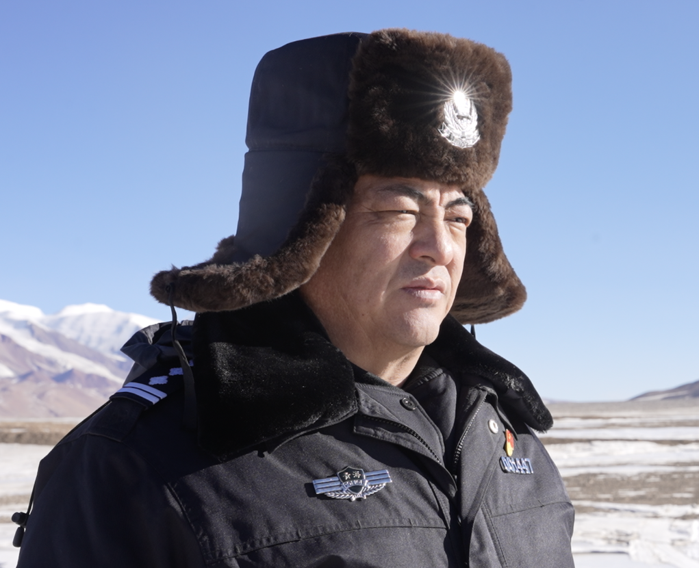 這是可可西里森林公安局一級警長普措才仁在太陽湖邊接受記者采訪(攝于2025年1月14日)新華社發(fā)