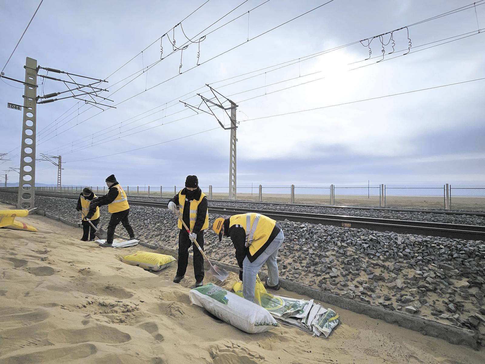大量流沙堆積在軌道上,會使道床彈性發(fā)生變化,影響列車行駛的平穩(wěn)性;被風(fēng)沙侵蝕的鐵軌,強(qiáng)度降低,容易出現(xiàn)斷裂等危險(xiǎn)情況。所以,戈壁“追沙人”的堅(jiān)守,是保障青藏鐵路暢通無阻、守護(hù)旅客安全出行、促進(jìn)地區(qū)經(jīng)濟(jì)繁榮的堅(jiān)實(shí)后盾。