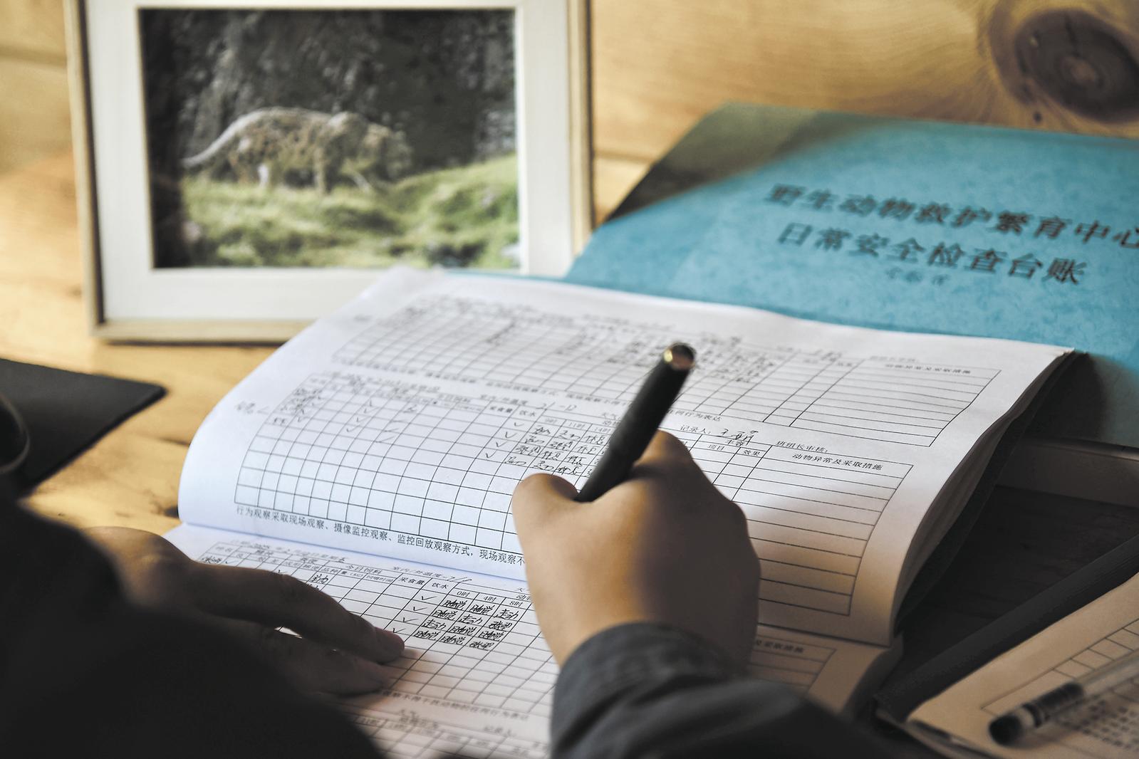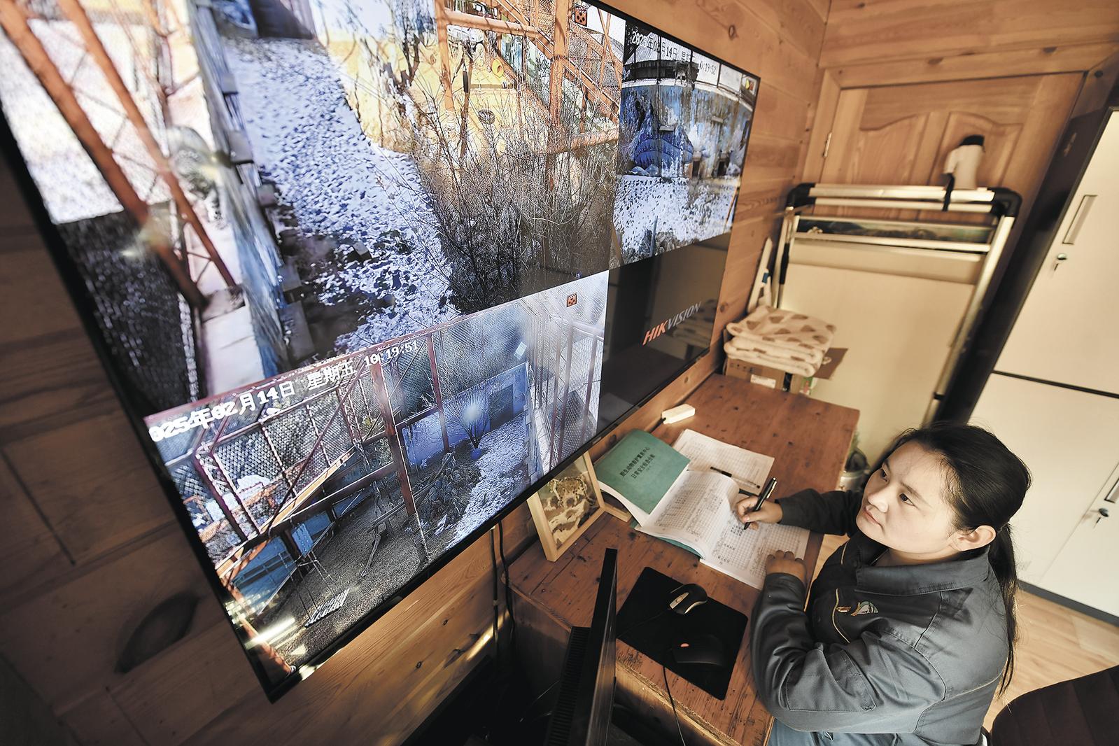 監(jiān)控室內(nèi),觀察完雪豹活動(dòng)后的王亞萍正在詳細(xì)地記錄著傲雪上午的活動(dòng)細(xì)節(jié),這些珍貴的數(shù)據(jù)對(duì)于雪豹的保護(hù)與研究至關(guān)重要?!巴ㄟ^(guò)記錄,我也很熟悉園內(nèi)每一只雪豹的性格與喜好,從雪豹的一舉一動(dòng)中,掌握與它們交流的方式。”王亞萍一邊記錄一邊驕傲地說(shuō)。