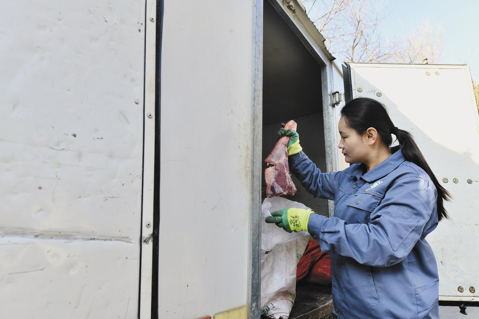 夕陽(yáng)西下,到了雪豹的開(kāi)飯時(shí)間,王亞萍提著新鮮的羊腿,步履輕盈地走向內(nèi)舍,要為她的伙伴們送上美味的晚餐。不能進(jìn)入內(nèi)室的我們仿佛看到了雪豹開(kāi)心邁向食物,享受大餐的畫(huà)面。