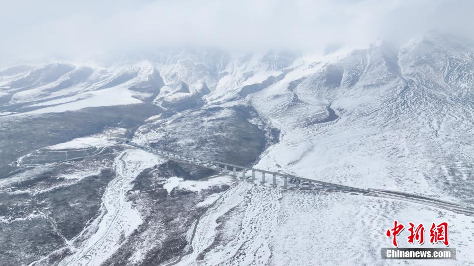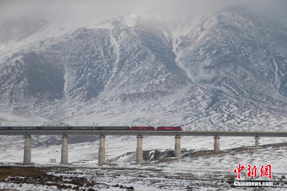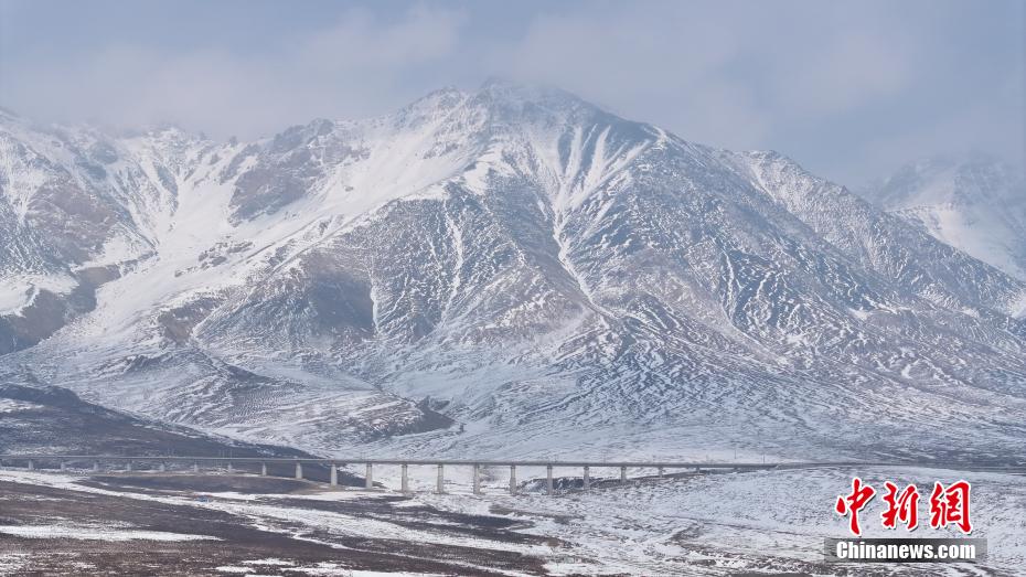 2月22日,鐵路列車從祁連山下行駛。一場(chǎng)春雪過后,青海省海北藏族自治州門源縣境內(nèi),連綿不絕的祁連山脈被白雪覆蓋,大地銀裝素裹,靜謐純凈,盡顯壯美山川。中新社記者 馬銘言 攝