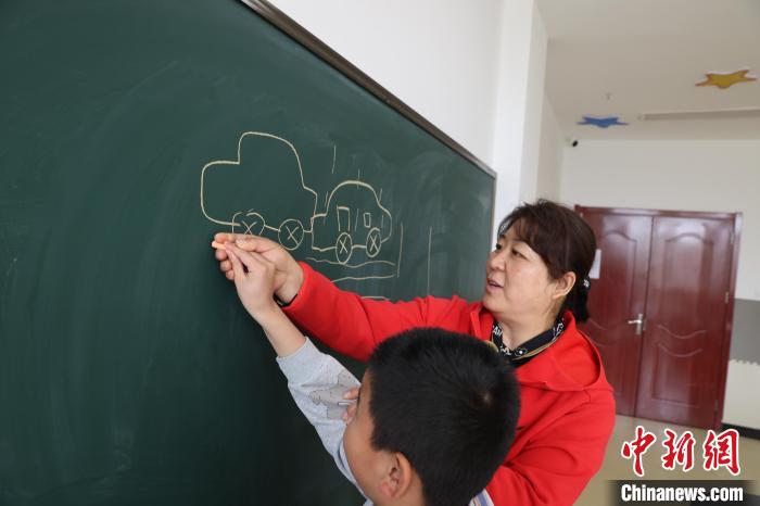 3月31日,青海西寧,特教老師陳志芳和孤獨(dú)癥兒童一起畫畫。青海省西寧市星光特殊兒童服務(wù)中心現(xiàn)有四十多名特教老師,他們用愛點(diǎn)亮“星星的孩子”內(nèi)心世界,幫助這些孩子更好地融入學(xué)校生活、走向社會。張忠蘋 攝