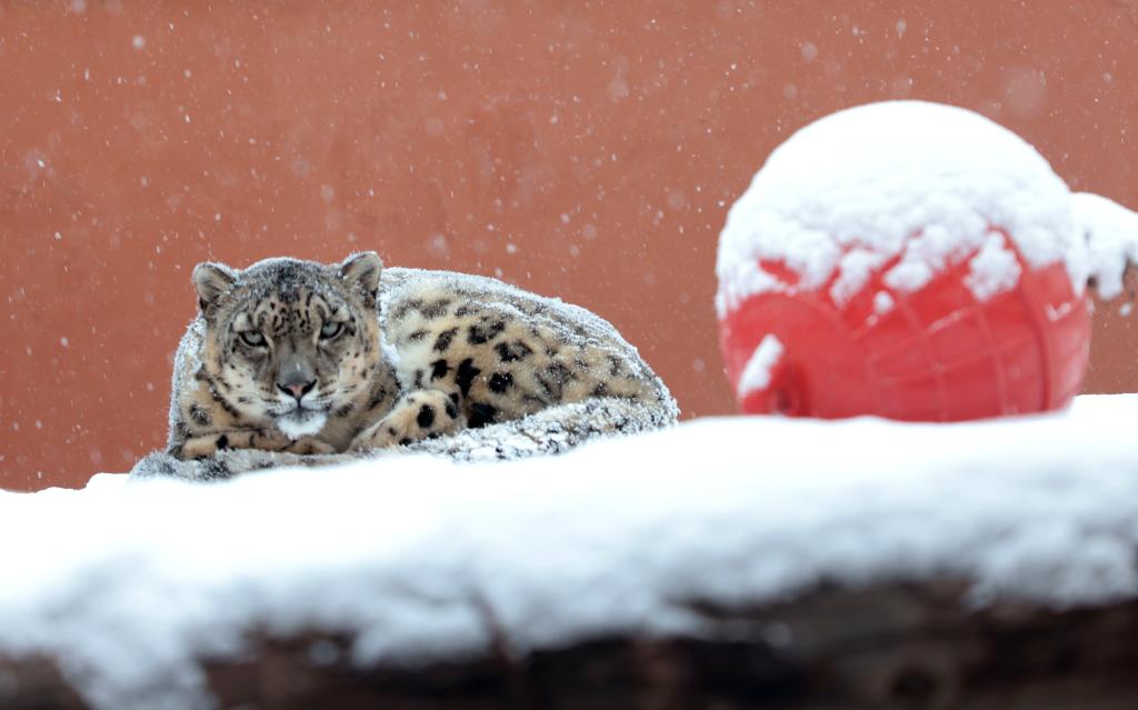 2024年,在西寧野生動物園,被救助的雪豹“凌霜”在休憩。新華社記者 李寧 攝