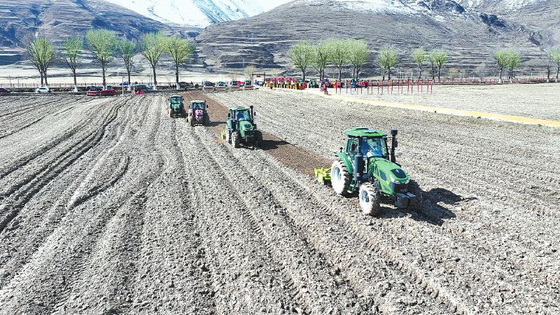 4月8日,四川省甘孜藏族自治州甘孜縣舉行春耕開耕儀式,數(shù)臺(tái)大型機(jī)械配合作業(yè),耕地、整地、施肥、播種等一氣呵成。目前,該縣已經(jīng)實(shí)現(xiàn)青稞“耕種管收”全程機(jī)械化。