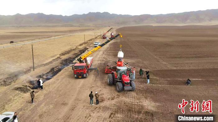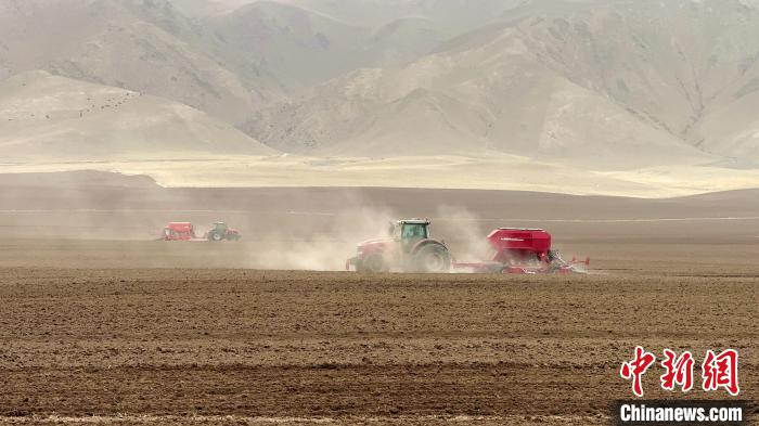 4月21日,青海省海南藏族自治州貴南縣貴南牧場(chǎng),大型機(jī)械正在播種青稞。該牧場(chǎng)今年種植青稞品種昆侖14號(hào)共5.1萬(wàn)畝,創(chuàng)全省種植青稞規(guī)模之最?!?/p>