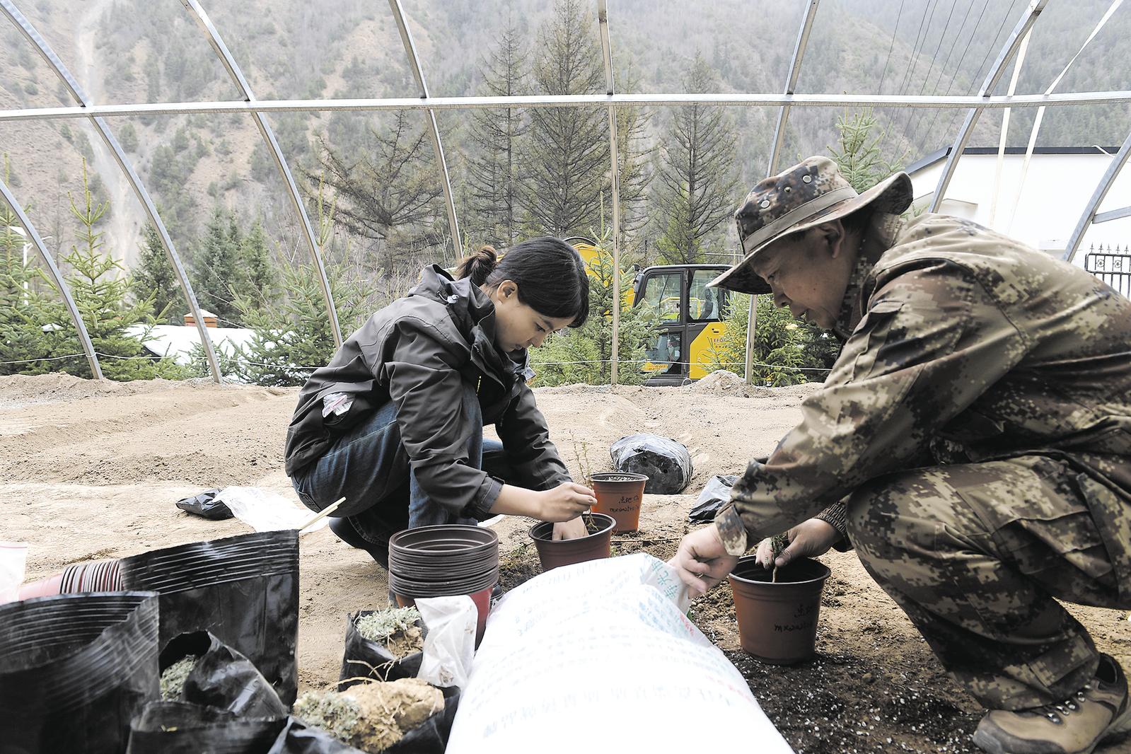 “這些都是從高海拔地區(qū)引種的珍稀植物,從我們這里培育成功后要送往西寧市植物園,助力西寧植物園創(chuàng)建國(guó)家植物園,今年下達(dá)了500多種植物的引種培育任務(wù)。”說(shuō)話間,技術(shù)員手中的活卻沒停下,捧一把土裝進(jìn)花盆,上面再放一層花卉苗木種植專用土,再將小小的苗木栽到花盆中,貼上標(biāo)簽。