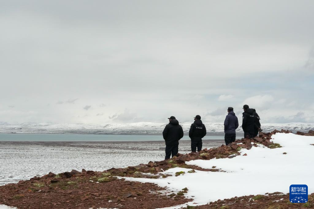 巡山隊員在可可西里卓乃湖附近巡護(7月3日攝)。新華社記者 杜笑微 攝