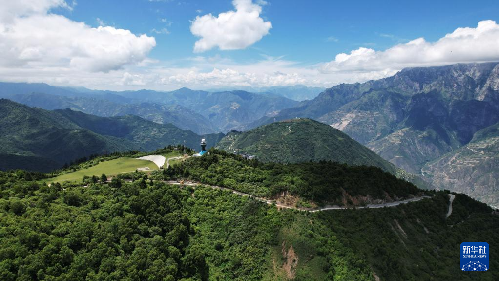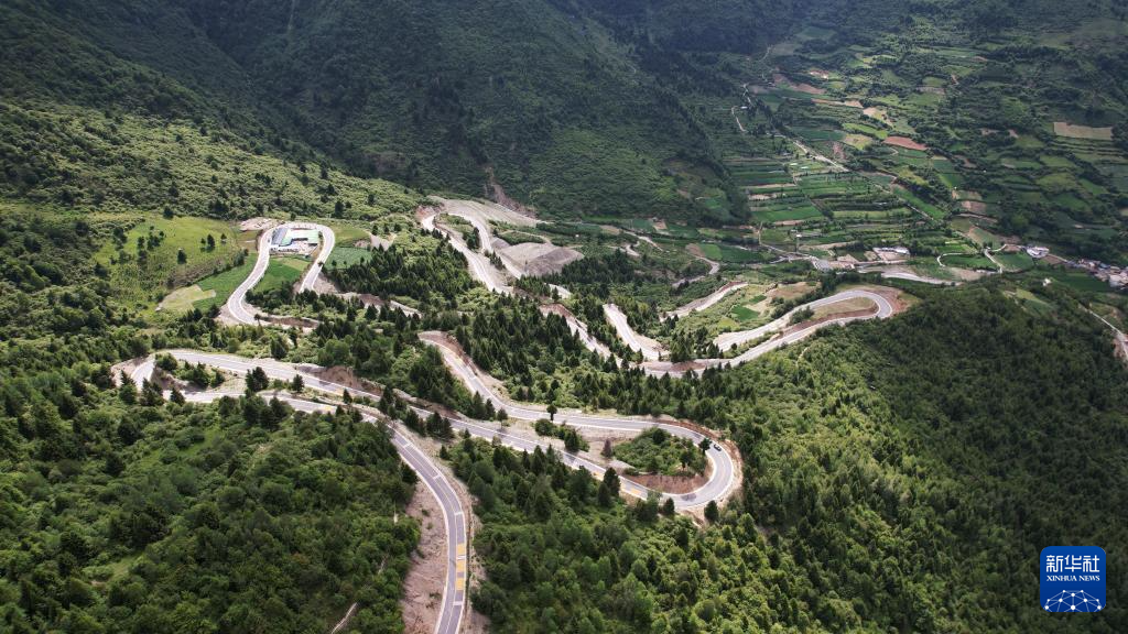 這是7月12日拍攝的舟曲“簪花之路”風景廊道沿線風光(無人機照片)。新華社記者 陳斌 攝