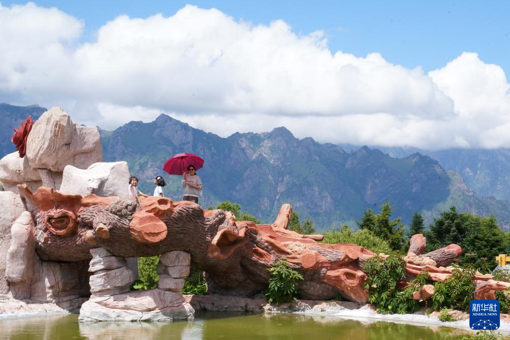 游客在舟曲拉尕山上合影留念(7月12日攝)。新華社記者 馬寧 攝