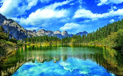 清澈的湖水是這畫卷靈動的詩行。尕海湖、骨麻湖、達(dá)宗湖等大小不等的湖泊鑲嵌在綠色的草原和林海之中。陽光灑落湖面,微風(fēng)過處,泛起粼粼波光,倒映著藍(lán)天白云和遠(yuǎn)處雪山的輪廓。水中世界與真實天地交相輝映,界限變得模糊而夢幻。