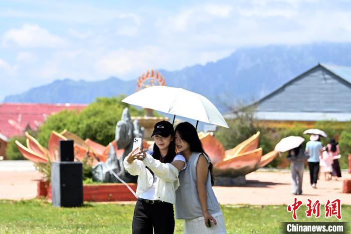 圖為7月13日,游客在舟曲拉尕山上拍照留念。九美旦增 攝