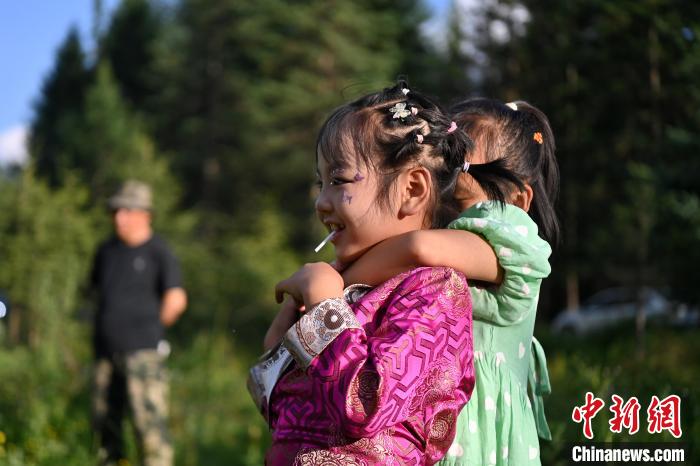 圖為7月13日,在“簪花之路”途經的沙灘國家森林公園里游玩的藏族小姑娘。九美旦增 攝