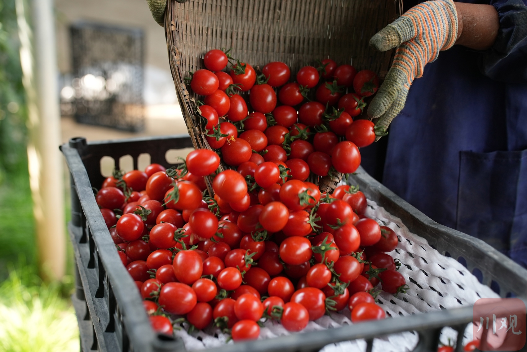 8月4日,松潘高原現(xiàn)代農(nóng)業(yè)產(chǎn)業(yè)園區(qū)內(nèi),豐收的高原水果小番茄進入采摘期。