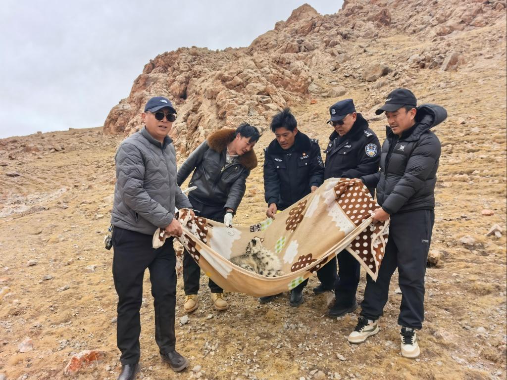 雪豹“凌小蟄”救護現(xiàn)場。(青海野生動物救護繁育中心供圖)