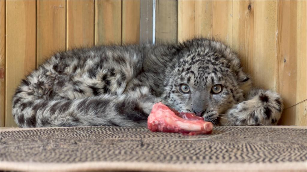 雪豹“凌小蟄”在身體逐步恢復(fù)健康后進(jìn)食。