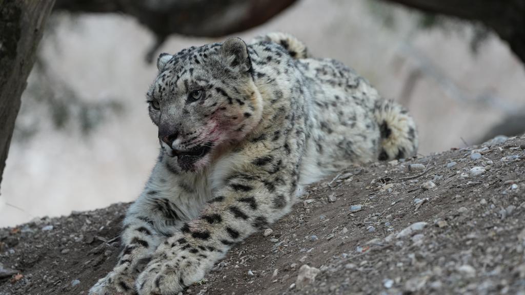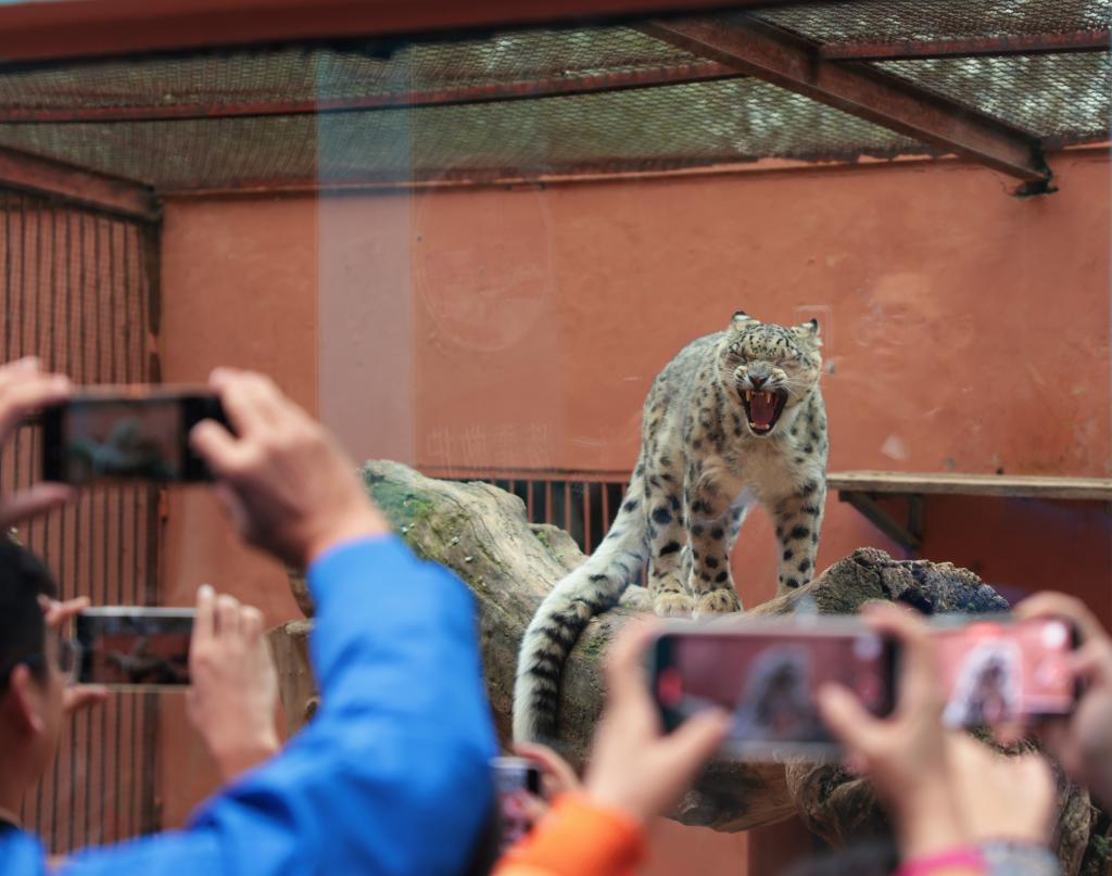 2025年3月被救護(hù)的雪豹“凌小蟄”在雪豹館內(nèi)嘶吼。