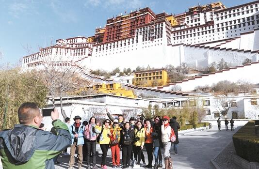 4月的拉薩春意盎然,跟隨春的腳步而來的是日漸增多的游客,近日,拉薩市各主要景點和風(fēng)景名勝區(qū)內(nèi)人頭攢動。記者在布達拉宮廣場看到,游客或身著藏民族服飾合影留念,或穿行于廣場公園賞花游玩,或湖面泛舟感受垂柳映春水的意境。圖為游客們在布達拉宮前合影留念。巴桑次仁攝
