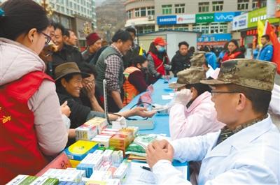 4月初,解放軍第75醫(yī)院官兵組織醫(yī)療隊進行愛民服務(wù)活動,為駐地群眾提供醫(yī)療咨詢服務(wù)、免費檢查身體、贈送藥品。 圖為愛民服務(wù)活動現(xiàn)場。 陳志強 攝