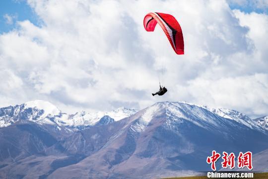圖為滑翔傘運(yùn)動員在羊八井高山訓(xùn)練基地附近進(jìn)行滑翔表演。 何蓬磊 攝