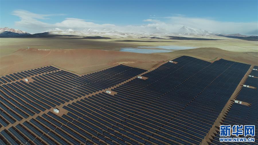 這是無人機(jī)拍攝的雙湖縣城太陽能發(fā)電站(1月31日攝)。 新華社記者 普布扎西 攝