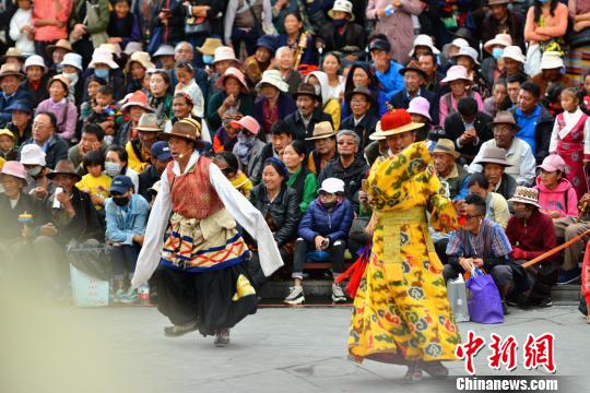 8月30日,西藏拉薩宗角祿康公園內(nèi),雪頓節(jié)藏戲展演如期進(jìn)行,現(xiàn)場(chǎng)“人山人?!薄=w波 攝