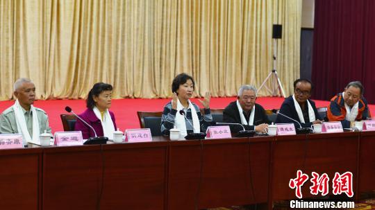 原十八軍高級將領(lǐng)張國華中將之女張小康、譚冠三中將之子譚戎生、陰法唐中將之女陰建白及原西藏自治區(qū)黨委書記洛桑慈誠之子洛桑云登、西藏軍區(qū)原副政委金紹山之子金遜、原十八軍52師154團(tuán)政委楊軍之子楊齊康、原十八軍54師文工隊指導(dǎo)員張均之女張琪和在藏的原十八軍老戰(zhàn)士陳明英等先后在座談會、報告會上發(fā)言,講述進(jìn)藏往事。