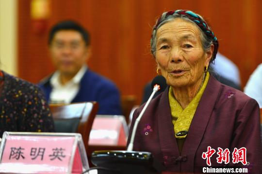 原十八軍戰(zhàn)士陳明英講述西藏變化?!〗w波 攝